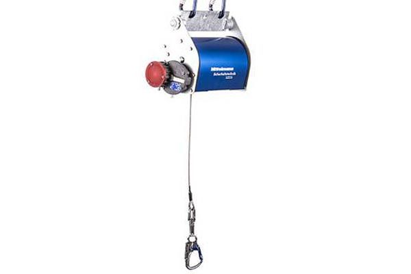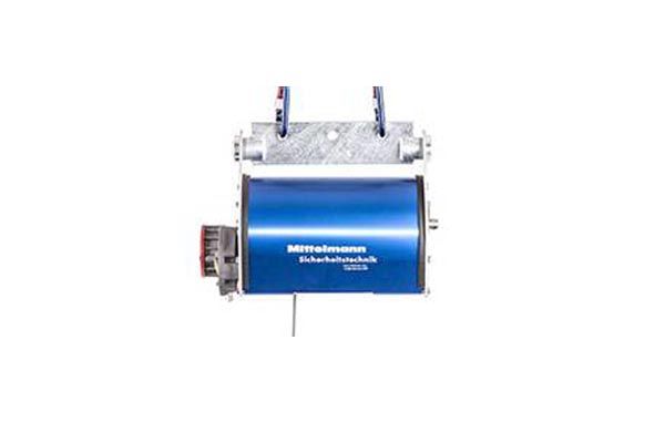This Rescue device is especially developed for work in tank and hopper wagons, streetcars, busses and airplanes. To this end the workplaces are covered with horizontal steel cables or with steel supports on which the Rescue device can be moved horizontally using a suitable carriage. This produces the greatest possible freedom of movement and safety for the user. (...) In the event of a fall, the user is lowe- red to the ground directly at a speed of 0.5 m/s and can return to work or leave the danger zone. The safety cable, made of 5mm strong, rust resistant steel wire is equipped on one side with quick-release hooks and retracted on the other side using a cable spool with guide grooves. At the cable’s slightest upward movement, the rescue device RG10 is immediately engaged. Any backward slippage on the cable is avoided by precise spool retraction. The RG10- Roll Rescue device can be equipped, on request, with an additional module, thus fulfilling the ATEX guidelines for use in areas where there is a significant danger of explosion.