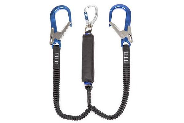 EN 354/355, made of flexible webbing strap. On the one hand with shock absorber FD40 MAX and trilock swivel carabiner 2292 TW3, on the other hand with 2x scaffold hook RH60 (Y-rope). Length 1,25m / stretched 1,80m. NEW approved up to 140kg.