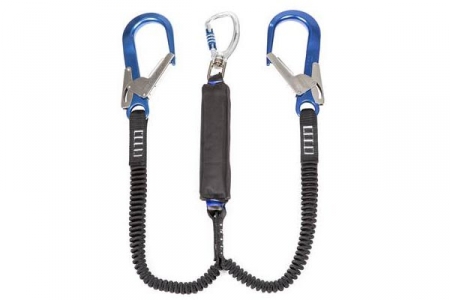 EN 354/355, made of flexible webbing strap. On the one hand with shock absorber FD40 MAX and trilock swivel carabiner 2292 TW3, on the other hand with carabiner RH20. Length 1,25m / stretched 1,70m. NEW approved up to 140kg.