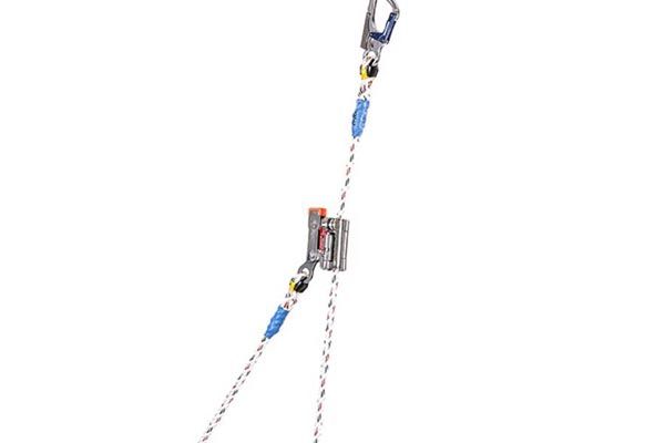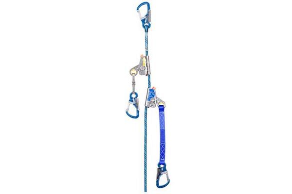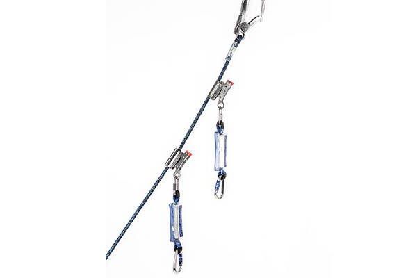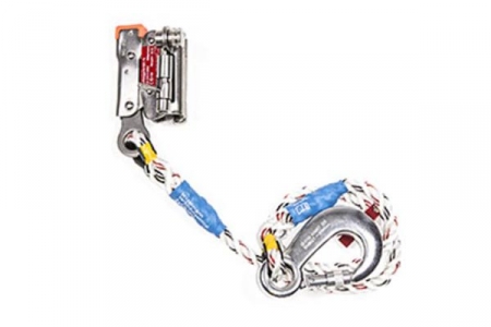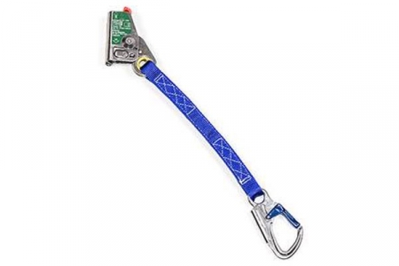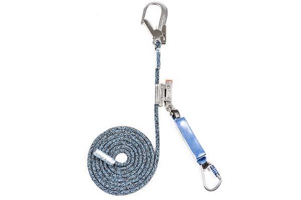 with integrated energy absorber / fall arrester KB2 and lanyard 0,5m with carabiner RH20. Safety rope one side with carabiner RH60, other side stitched end.