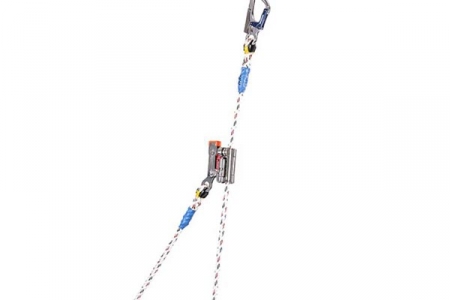 When using long Safety ropes, there is a danger of a long fall. Fall arresters use the safety rope to create the shortest connection possible between the attachment point and the full body harness. Here we have to differentiate between fixed locking fall arresters (type KB1 and KB2), and free-moving fall arresters (type AH3 and AH4). (...)The locking fall arresters lock on vertical safety ropes and can only be moved in both directions by using the handgrip. Free-moving fall arresters work automatically, they follow the vertical safety ropes, as far as the person secured moves up or down. The free moving fall arresters are equipped with a patented reverse brake, which makes it impossible to put the fall arrester on the safety rope in the wrong direction. The special version "F" of the free-moving fall arrester (types AH3F, AH4F) consists of an additional weight on the device that improves the motion characteristics on the safety rope.